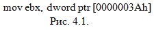 д) регистр ebx будет содержать данные размером в двойное слово, находящиеся по адресу 0000003A; +